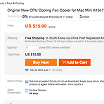 컴퓨터를 거의 24시간 내내 틀어놓고 살아가는데, 얼마 전부터 조용하던 팬이 공사장 중장비와 닮은 소리를 내기 시작했다. 낮에는 그러려니 하고 소리를 참을 수 있었지만, 밤에는 무시무시한 쿨러 소음 덕분에 좀처럼 잠을 이룰 수 없었다. 슬립 모드로 해놓아도 이따금 돌아가는 쿨러 소리에 잠을 깰때가 많았고, 결국 잠들기 전에 컴퓨터를 끄고 아침에 일어나서 다시 켜야 하는 귀찮은 작업을 반복하다가 결국 수리를 맡기려다 생각보다 비싼 비용에 질겁하여 직접 수리를 하기로 하였다. 우선 맥미니용 쿨러를 구해야 하는데, 국내에서 구하기란 쉽지 않고 역시 우리의 '알리 익스프레스' 를 이용하기로 했다. 배송은 운이 좋아 2주밖에 안 걸렸다. 이 정도면 칭찬해줘도 괜찮을듯한 가격이다. (주의할 점은 너무 싸거나 판매자..